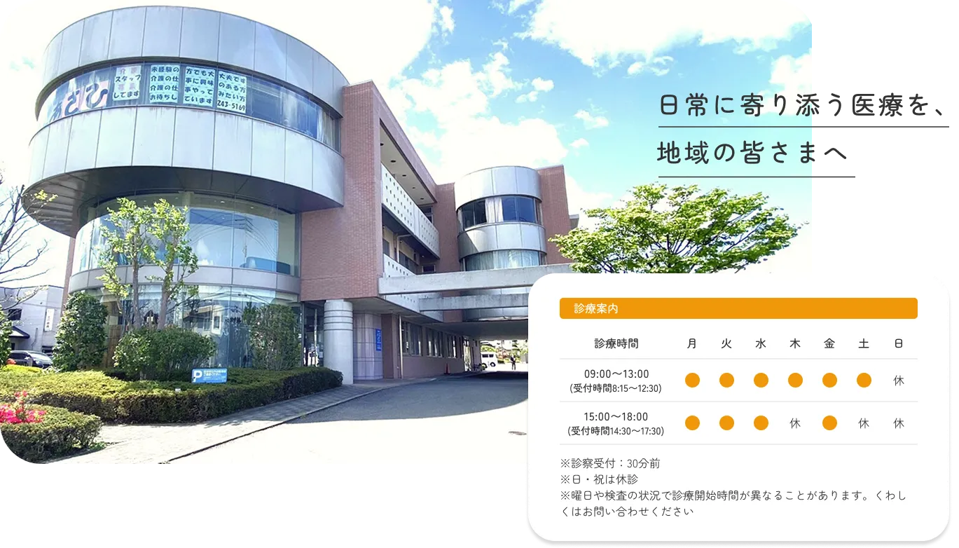 地域の皆様が安心して健康な毎日を送れるよう、スタッフ一同、誠心誠意努めてまいる所存です。 どうぞよろしくお願い申し上げます。